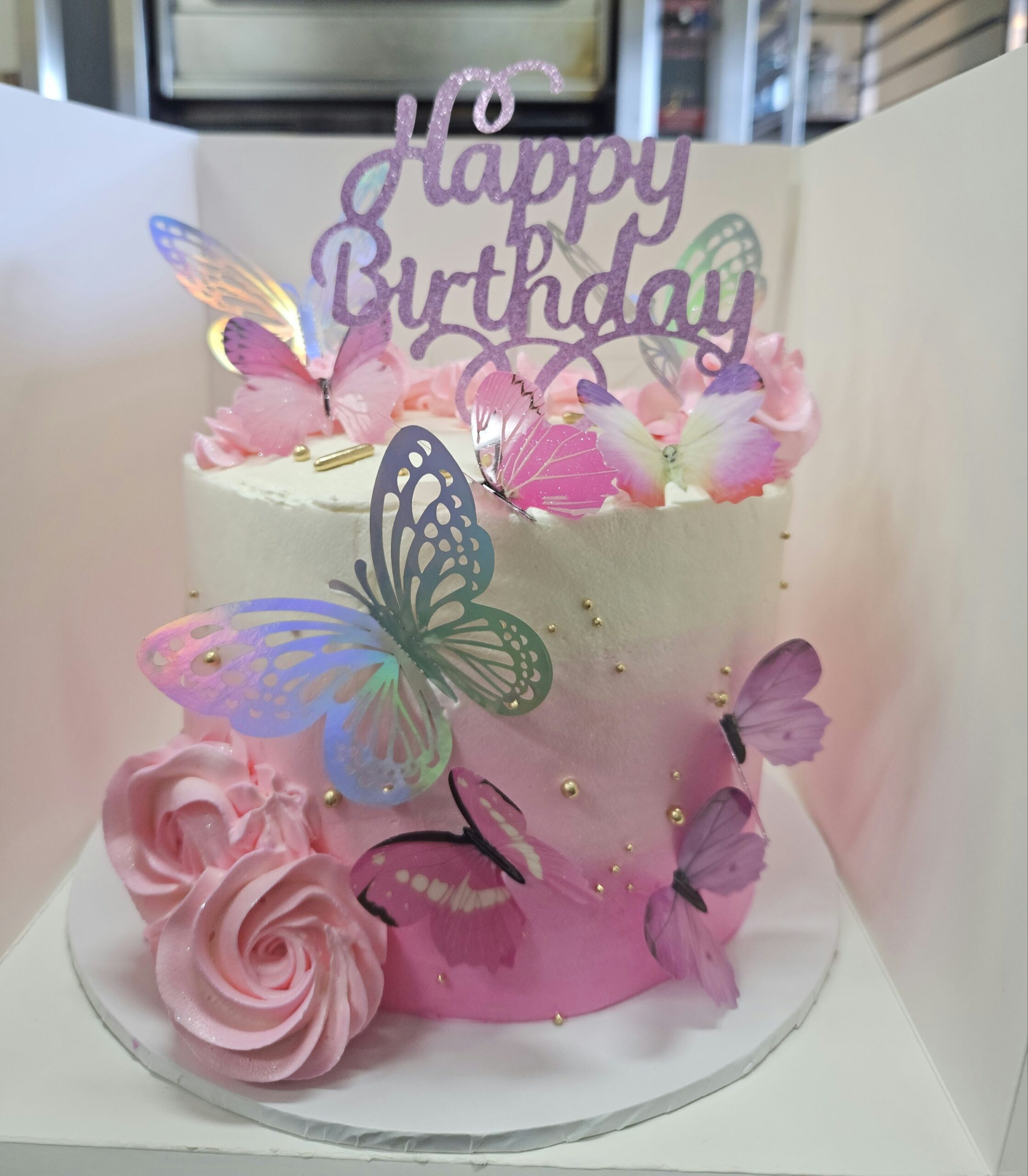 $150.00 Flavour Choose an optionchocolate MudChocolate SpongeVanilla SpongeClear Message on the cake : Pink Butterfly Cake quantity Add to cart SKU: N/A Category: Cake Click to share on Facebook (Opens in new window)Click to share on Twitter (Opens in new window)Click to share on Pinterest (Opens in new window)Click to share on Tumblr (Opens in new window) Description Additional information Reviews (0) Description Edible Cake Topper Decoration 7 inches 4 layers butter cream frosting cake. Additional information Flavour chocolate Mud, Chocolate Sponge, Vanilla Sponge Reviews There are no reviews yet. Be the first to review “Pink Butterfly Cake” Cancel replyYour email address will not be published. Required fields are marked *Your Rating Rate… Perfect Good Average Not that bad Very Poor Your ReviewName * Email * Save my name, email, and website in this browser for the next time I comment.